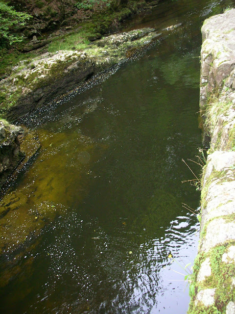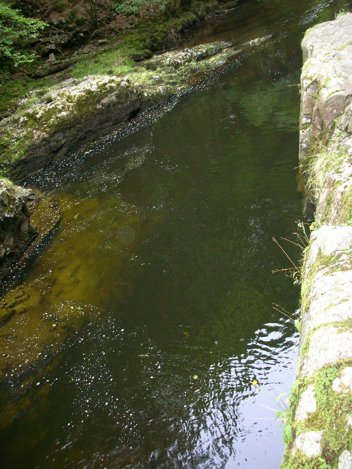 Went out with the family to the Black Mountains for a picnic today, we drove back through Glyn Neath so me and the boys had a quick dip at Little Canyon. The water was cold and had a nice amber tint to it. The water was really deep and the gentle flow of the current pushed you slowly through the gorge. Jake enjoyed jumping off the limestone platform into the abyss.